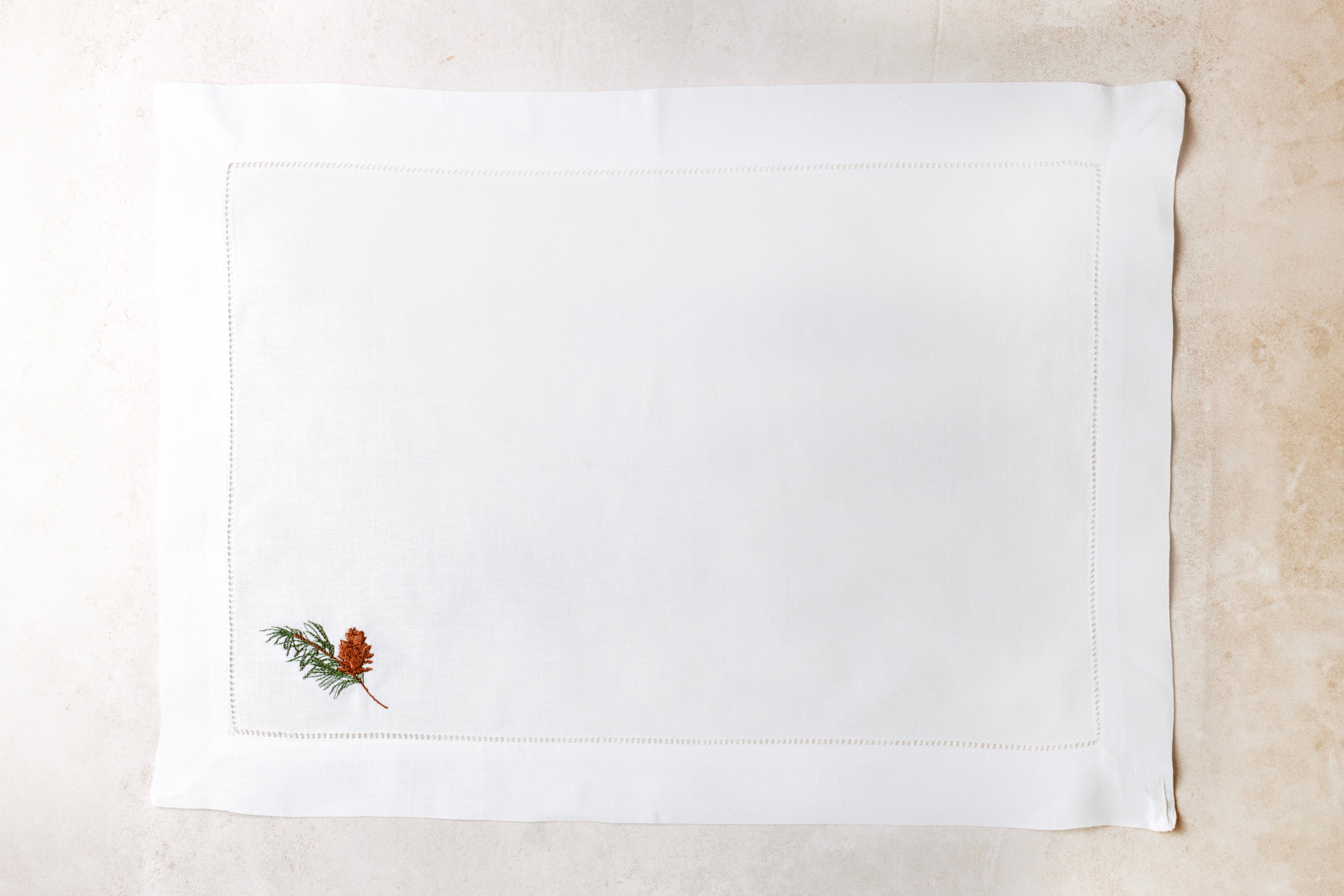 Mantel individual de lino con piña bordada