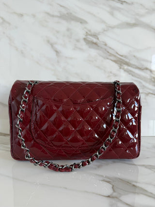 CLASSIC DOUBLE FLAP BAG IN BURGUNDY PATENT LEATHER