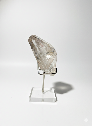 Clear Quartz is known for its clarity and natural beauty. This piece includes unique mineral incrustations, giving it character and a distinctive, organic look. Its transparent structure reflects light softly, making it a versatile decorative accent. Simple, refined, and naturally elegant, adds a touch of purity and harmony to any space.
