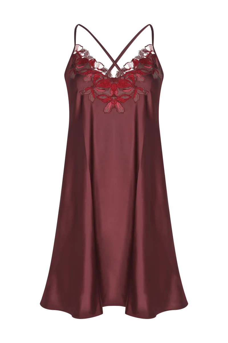 Descubre el camisón corto "Nao", confeccionado en satin elástico con exquisitos detalles de encaje bordado en forma de V en el escote frontal, que añade un toque sensual y elegante. El encanto de la espalda reside en su escote bajo circular con tirantes ajustables cruzados, diseñado para realzar tu sensualidad. Combínalo con la bata "Maicha" para crear el look perfecto. Elegante y sofisticado