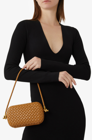 MINAUDIÈRE CARAMEL CLUTCH WITH KNOT STRAP
